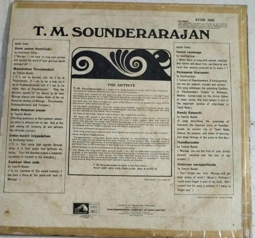 Devotional Film Hits Tamil LP VInyl Record by TM Soundararajan